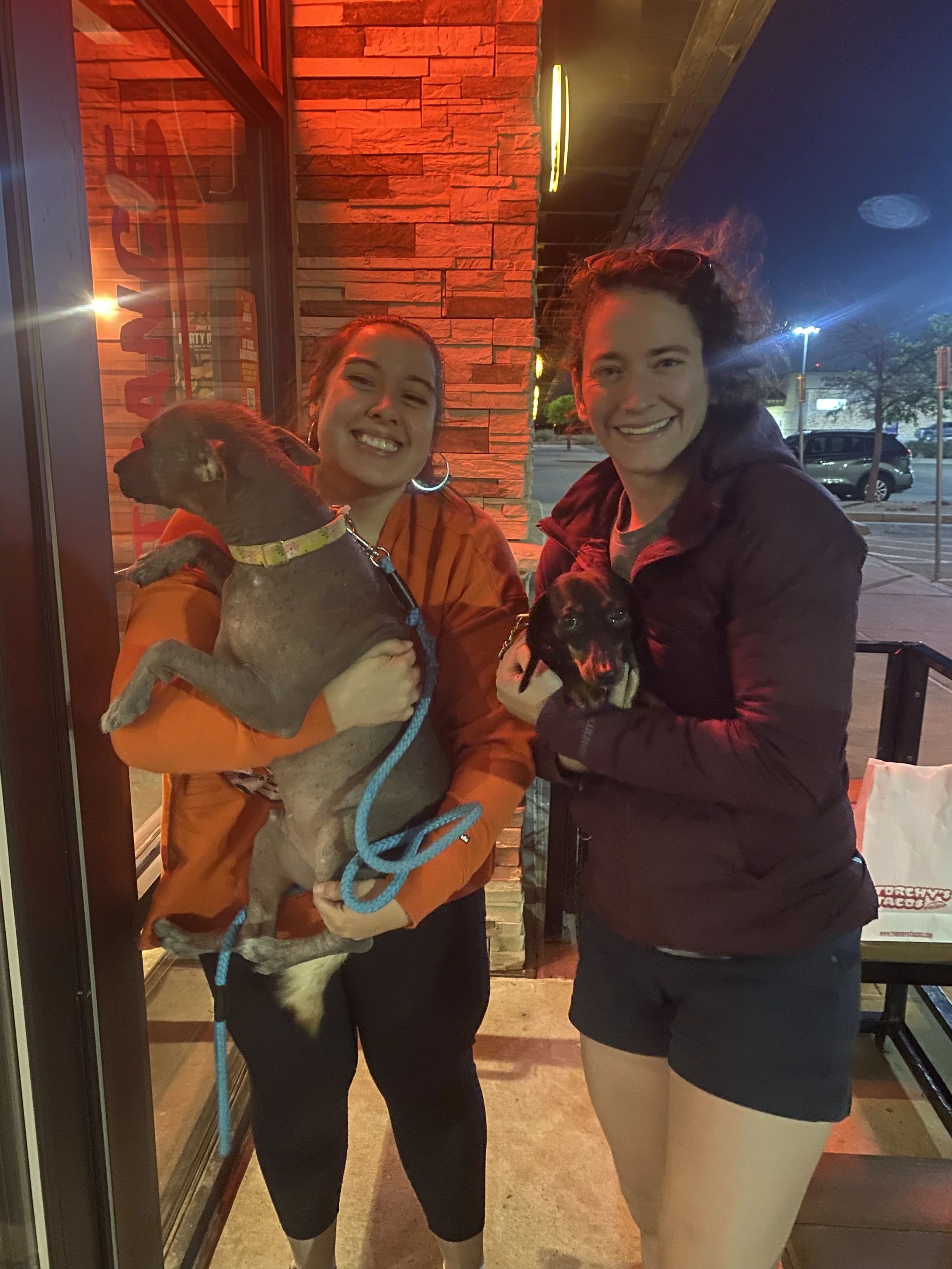 In the evening, I got the chance to catch up with a college friend who is based in Amarillo for medical school. We sang a cappella together in a very Pitch Perfect kind of group back at Princeton, and while we didn't sing for our supper that night, our dogs tried to sing for scraps of Torchy's Tacos.